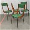 Lotto composto da quattro sedie con gambe in acciaio verniciato nero, puntali in ottone, fianchi in legno impiallacciato, seduta in vinilpelle stampata nera e verde. Italia, anni '60. (cm 44x93x47) (difetti)