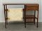 Piccola consolle in legno impiallacciato con due cassettini laterali e portariv