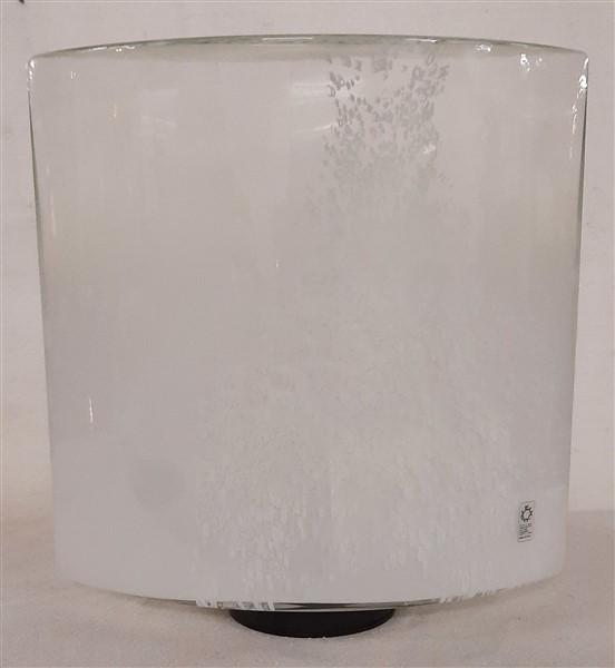 * Lampada da parete della serie "Idra". Esecuzione Leucos, Murano, 1980. Vetro soffiato in stampo incamiciato sfumato lattimo con murrine, struttura in metallo verniciato. (cm 40x41,5x23,5)