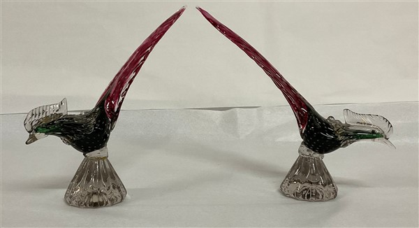 Manifattura di Murano Coppia di fagiani in vetro sommerso trasparente incolore,