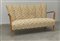 Divanetto a due posti con struttura in legno chiaro, seduta e schienale imbottiti e rivestiti in tessuto a fiori. Italia, anni '50. (cm 132x76x72) (lievi difetti e sostituzioni)