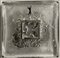 Centrotavola della serie "Domino". Manifattura Kostaboda, Svezia, secolo XX. Vetro massello e foglia d'argento. Recante etichetta adesiva della manifattura. (cm 22x6,5x22)