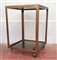 Tavolino su rotelle a due ripiani con struttura in ottone, ripiani in vetro fumé. Italia, anni '60. (cm 40x55x40) (difetti)