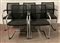 Lotto composto da cinque poltroncine da ufficio. Italia, produzione recente. Struttura in acciaio verniciato grigio, plastica nera, seduta e schienale in plastica e tessuto nero. Recante etichetta della produzione. (cm 57,5x84,5x63) (lievi difetti)