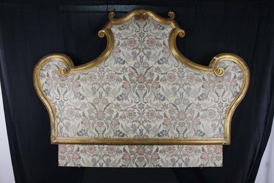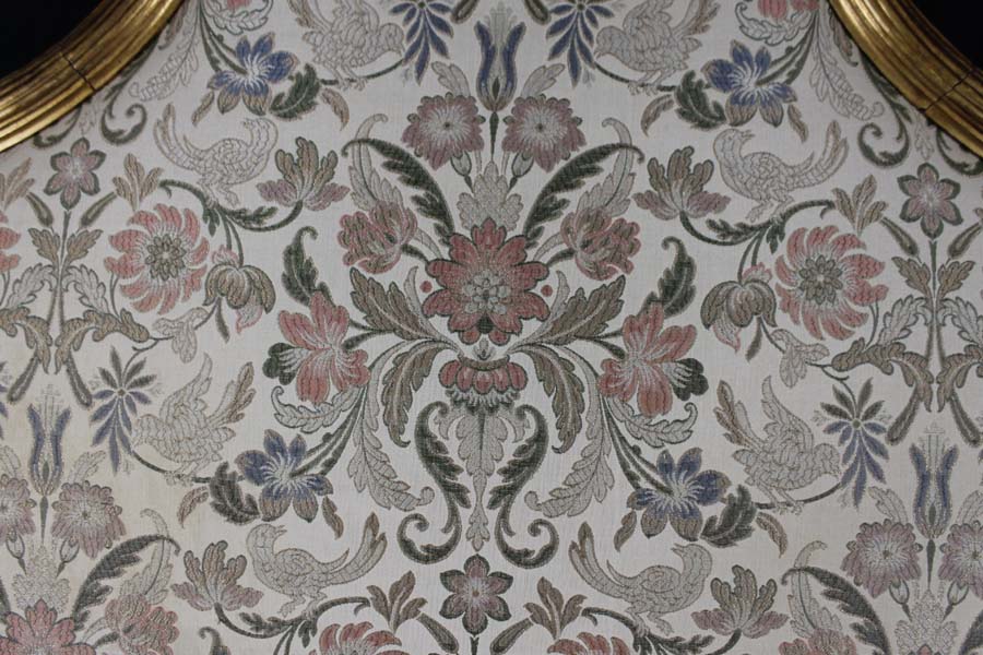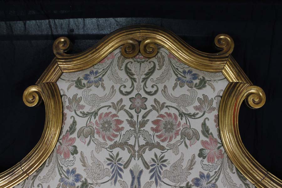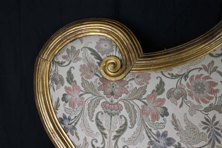 in legno dorato ed intagliato cornice di linea sagomata, tappezzeria damascata