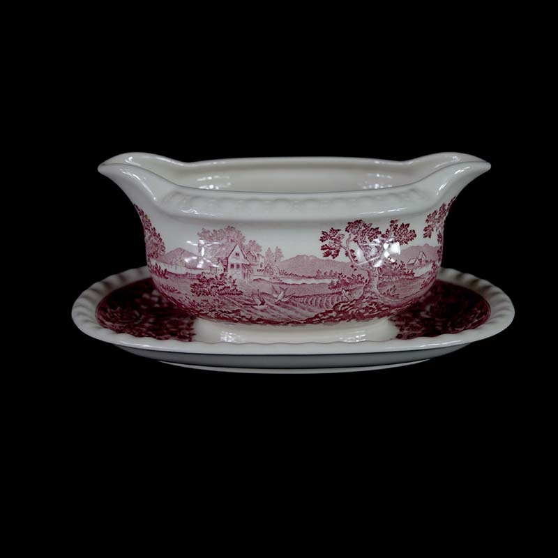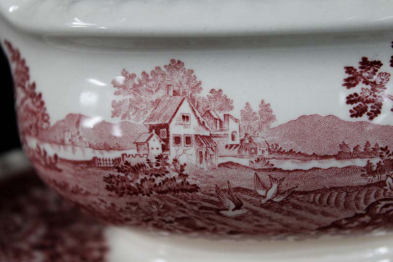 in ceramica decorata a monocromo in rosa con paesaggi, manifattura Villeroy e Boch ' La Rusticana '