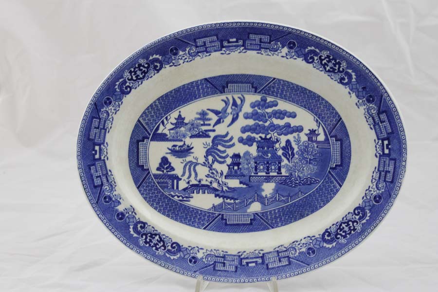 in ceramica decorata a monocromo blu col motivo del Salice Piangente, marcato Willow Victoria Porcelain Fenton England