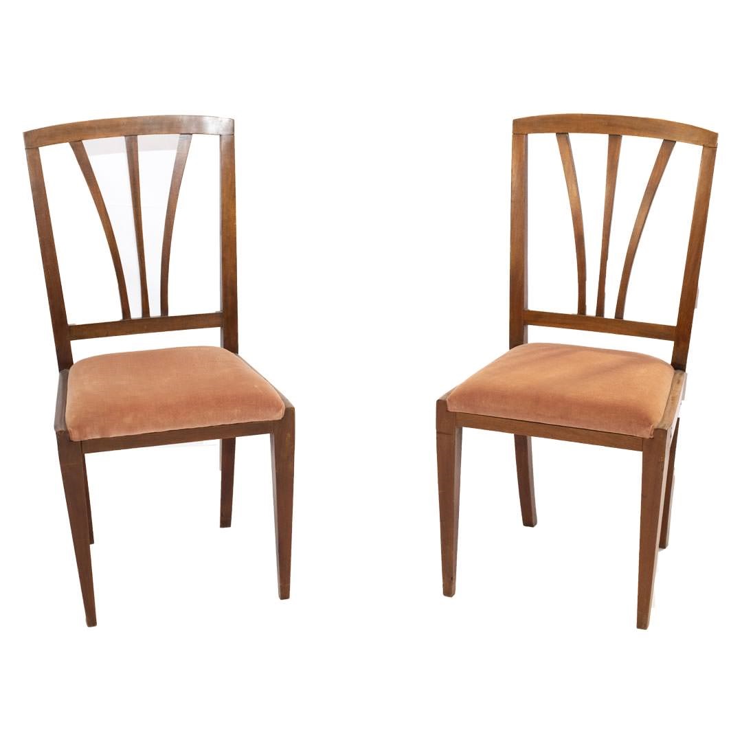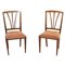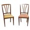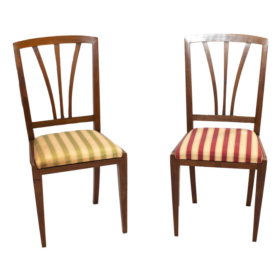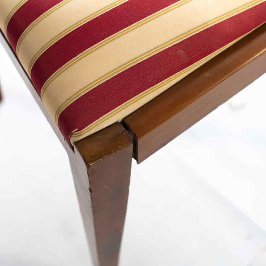 in mogano biondo, spalliera a stecche svasate, sedute in tessuti diversi(4)
