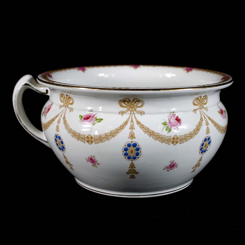in porcellana bianca, decorato a motivi di fiori e festoni, marca sotto la base Thackeray F. W. England