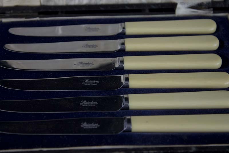 con lame in sheffield e manici in avoriolina, entro custodia originale