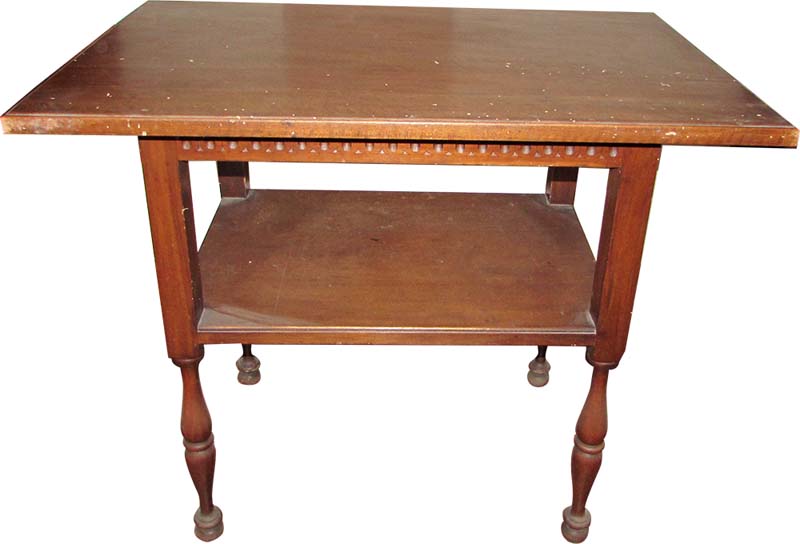 in faggio, piano rettangolare gambe tornite, raccordate da sottopiano rettangolare