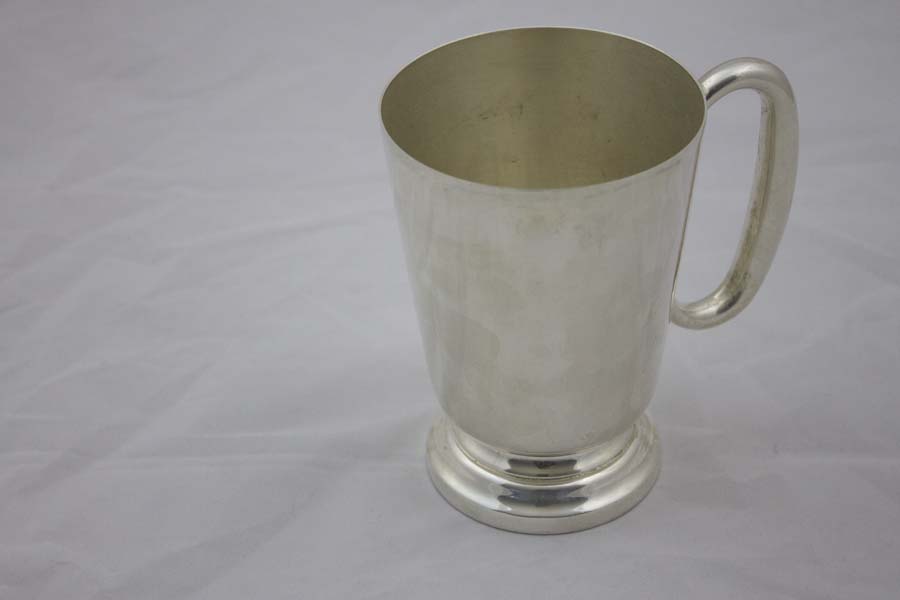 in metallo argentato, corpo liscio, manico sagomato, bollo e.p.n.s. sotto la base