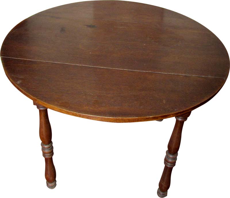 in rovere, piano circolare, gambe tornite