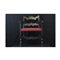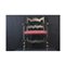schienale sagomato, gambe riunite da traversa, seduta imbottita e rivestita in tessuto rosso