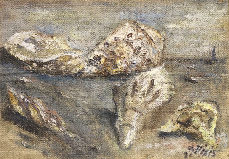 Filippo de Pisis Ferrara 1896 - Milano 1956 Natura morta, (1926) Olio su tela applicata su cartone, cm. 25x33 Firma e data in basso a destra: De Pisis / [26]. Al verso sul cartone: timbro Galleria d'Arte La Bussola.