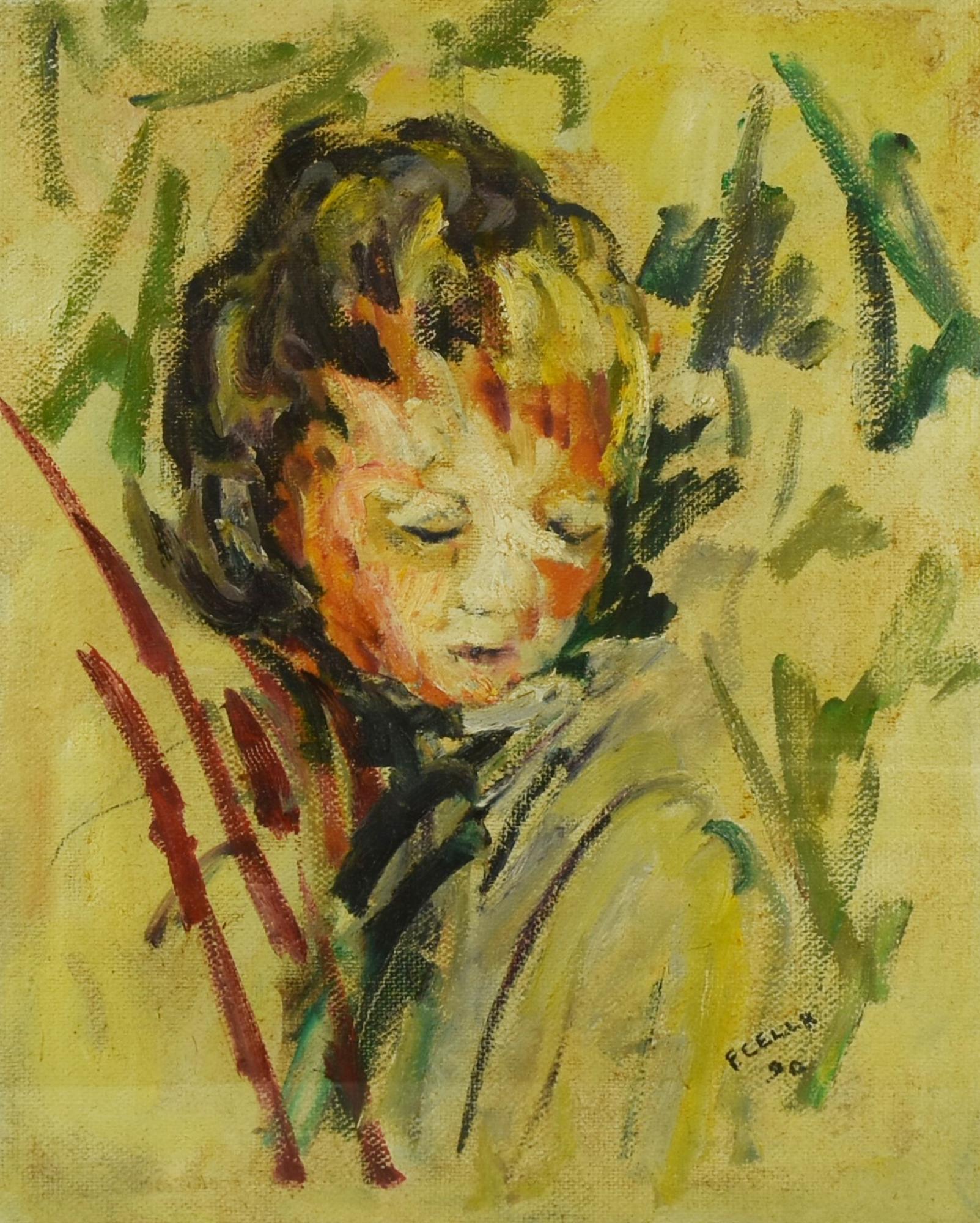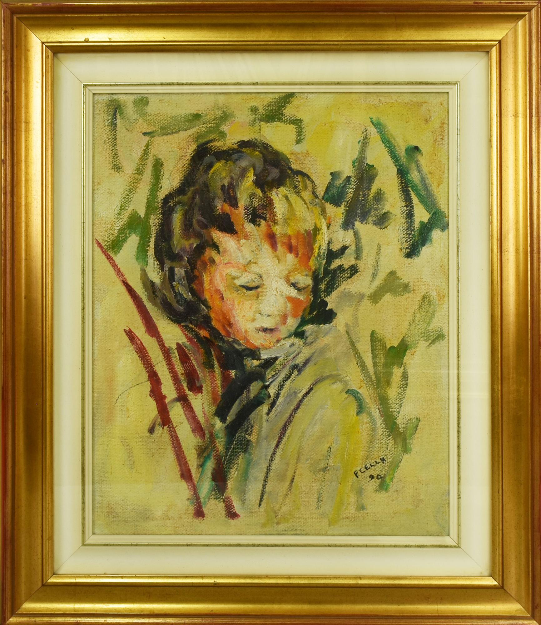 Francesco Cella BAMBINO olio su tela, 50x40cm sul retro: firma eseguito nel 1990