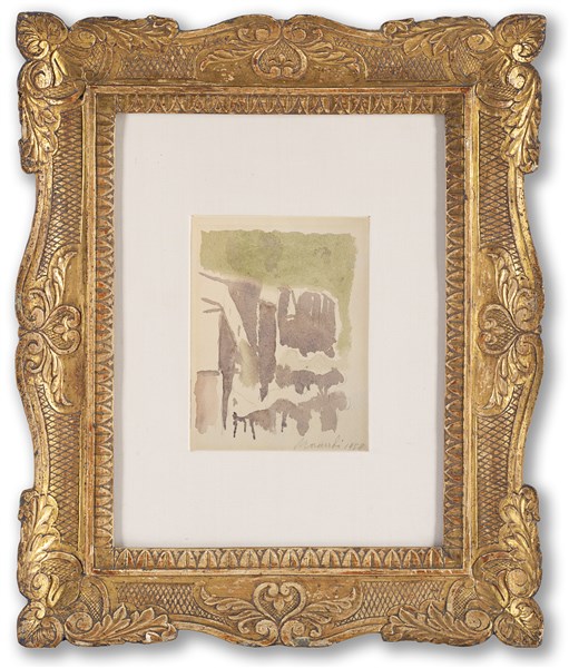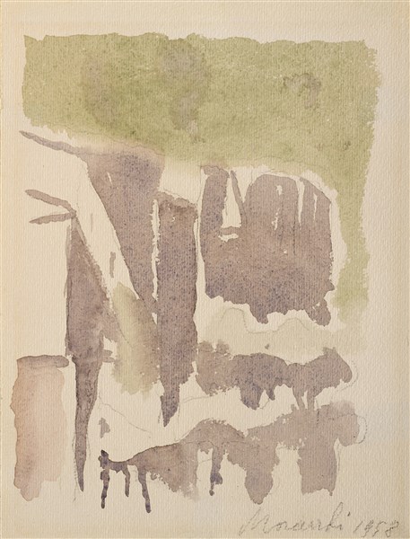Giorgio Morandi "Paesaggio (Casa in rovina)" 1958 acquerello su carta cm 21x16 F