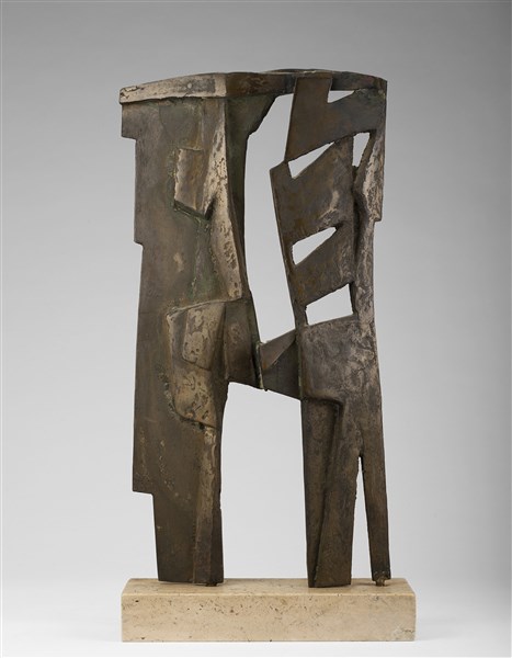 Pietro Consagra "Colloquio" 1955 bronzo cm 42,5x23x4 base in travertino cm 4x24x