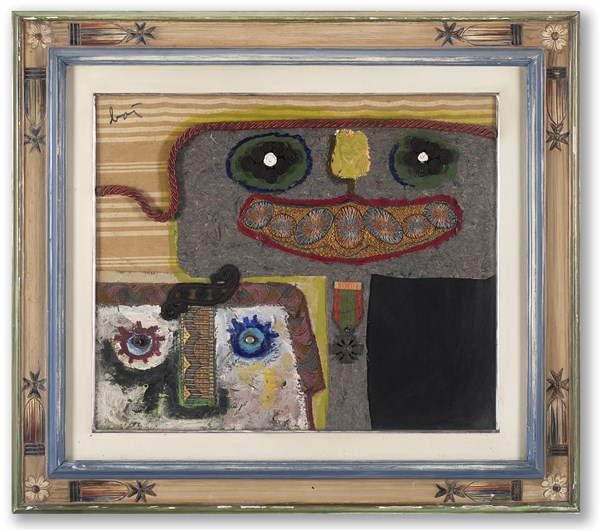Enrico Baj "Couple" 1966 acrilico, collage, ovatta, passamaneria, decorazioni e