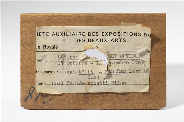"Lumière, mouvement et optique" Palais des Beaux Arts de Bruxelles, Bruxelles, 14 October - 14 November 1965, n. 114 in catalogue