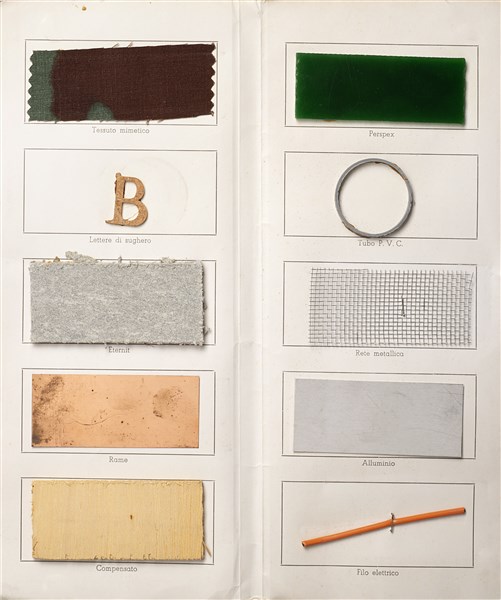 Alighiero Boetti "Senza titolo" 1966-67 materiali vari applicati su cartoncino s