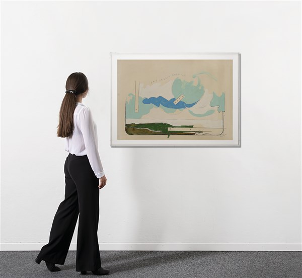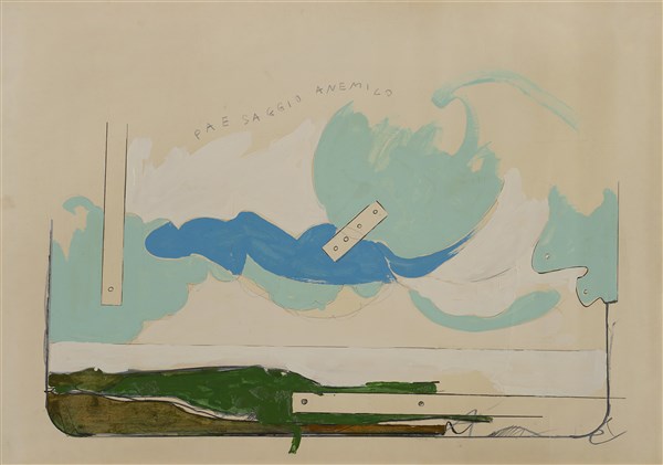 Mario Schifano "Paesaggio anemico" 1965 smalto e grafite su carta cm 69x98,3 Pr