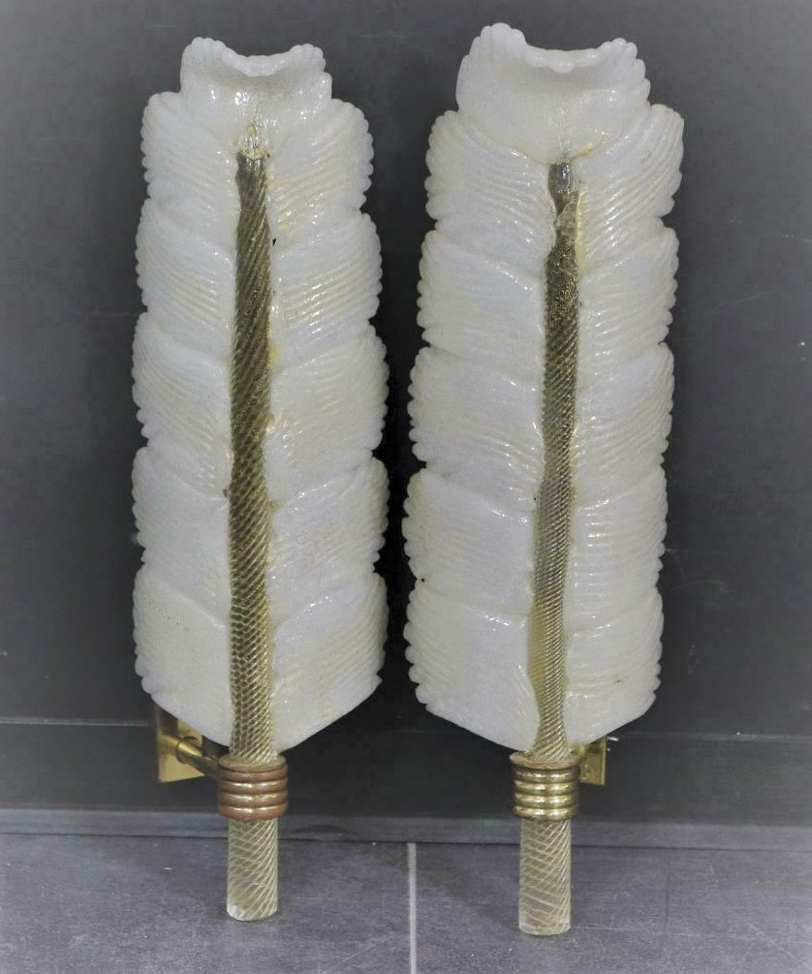 Vetreria Barovier Seguso Ferro Due appliques, Anni ‘30;in vetro pulegoso, foglia oro e ottone, 45 x