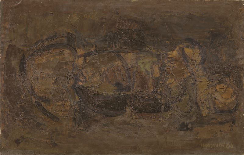 Ennio Morlotti Lecco 1910 - Milano 1992 Nudo, 1964 Olio su tela, cm. 70,5x110,2 Firma e data in basso a destra e al verso sulla tela: Morlotti 64; sul telaio: etichetta Ente Premi Roma / Palazzo Barberini / Mostra Antologica / di Ennio Morlotti / 28 gennaio - 15 marzo 1966. Esposizioni Guttuso e gli amici di Corrente, a cura di Enrico Dei, Seravezza, Palazzo Mediceo, 1 luglio - 11 settembre 2011, cat. p. 129, illustrato a colori.