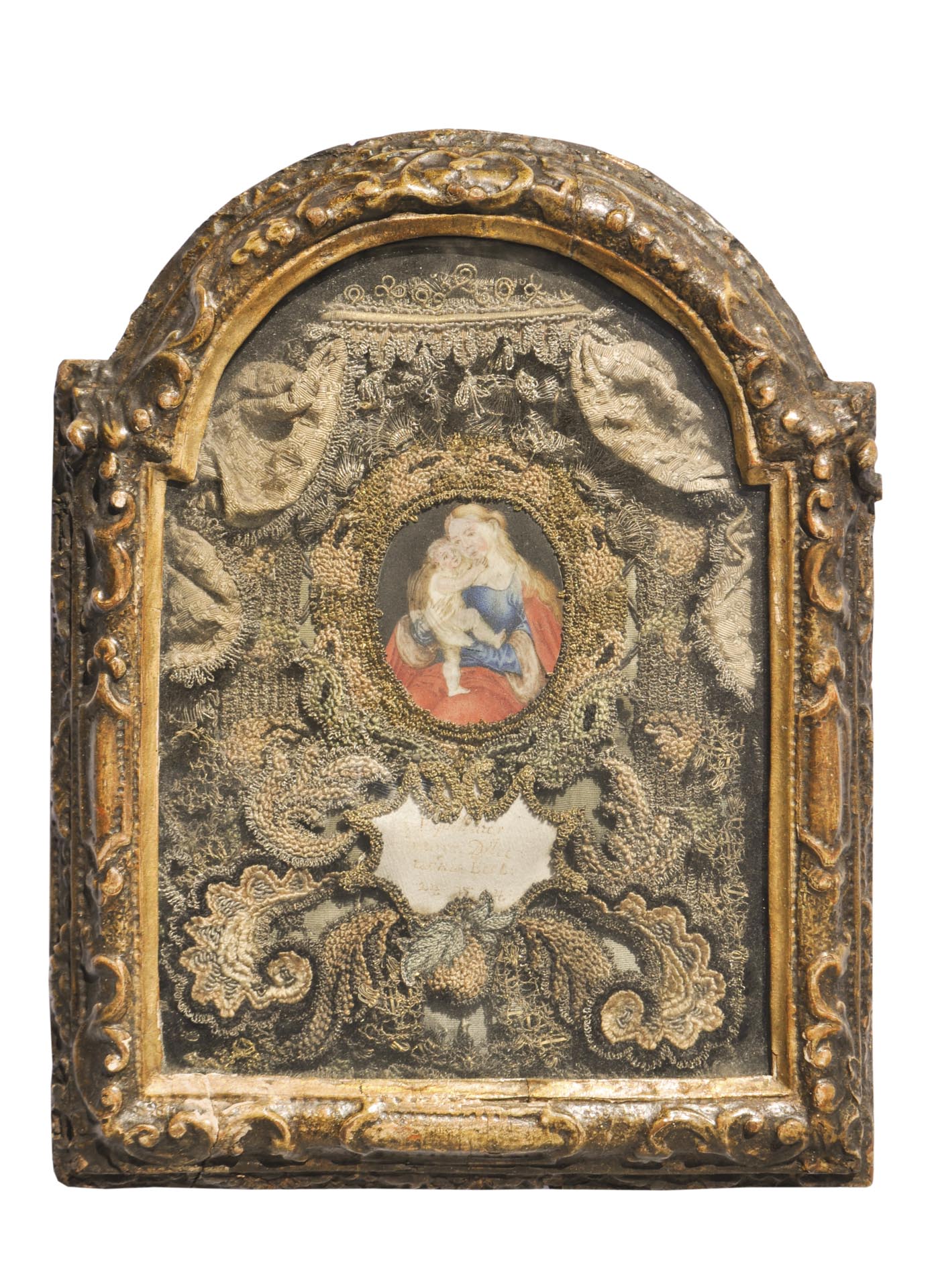 - Produzione monastica con immagine miracolosa Maria Hilf, XVIII sec.;Tempera, materiali diversi, cornice originale,