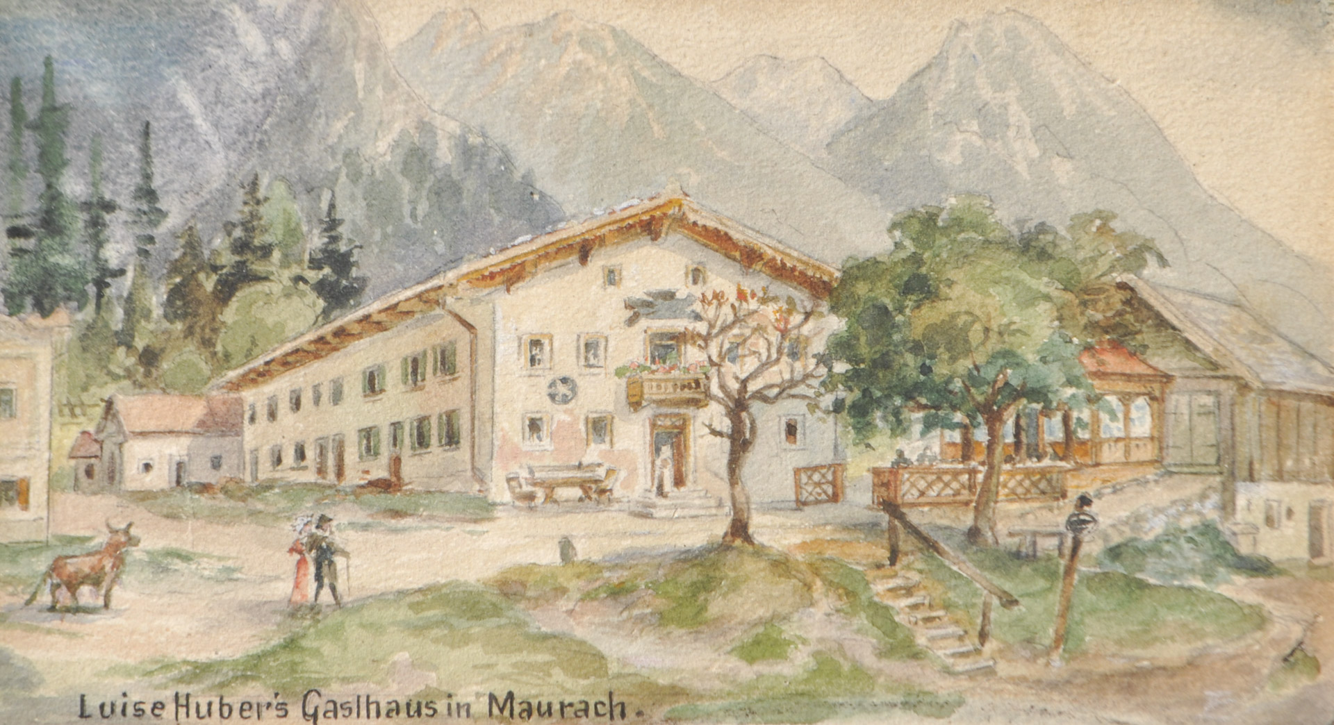 A. Ringler Locanda di Luise Huber a Maurach lago Achensee, 1904;Acquerello