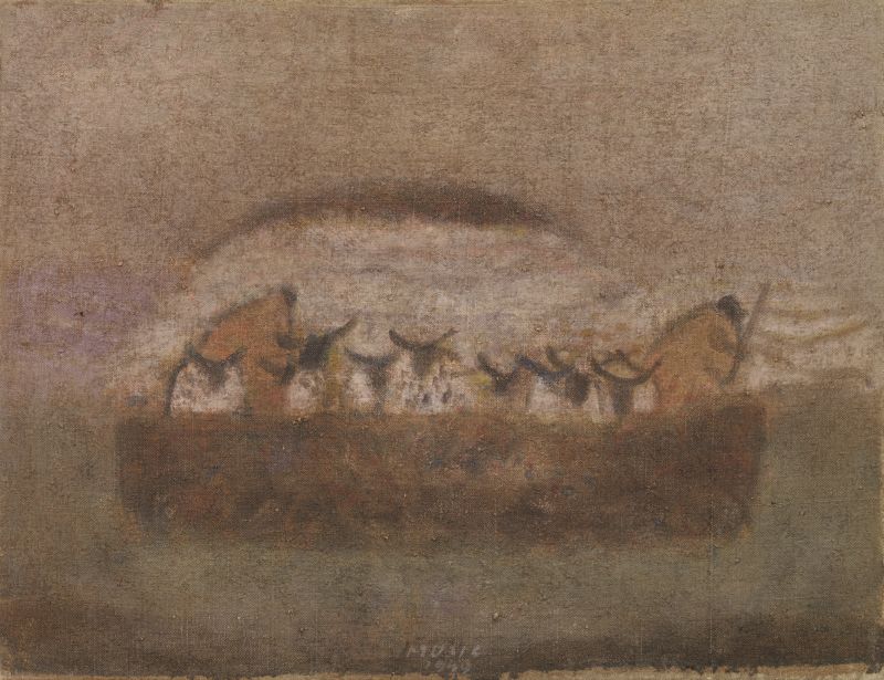 Antonio Zoran Music Gorizia 1909 - Venezia 2005 Il traghetto, 1949 Olio su tela, cm. 50x65 Firma e data in basso al centro: Music / 1949; al verso sulla tela firma, titolo e data: Music / Il traghetto / 1949.