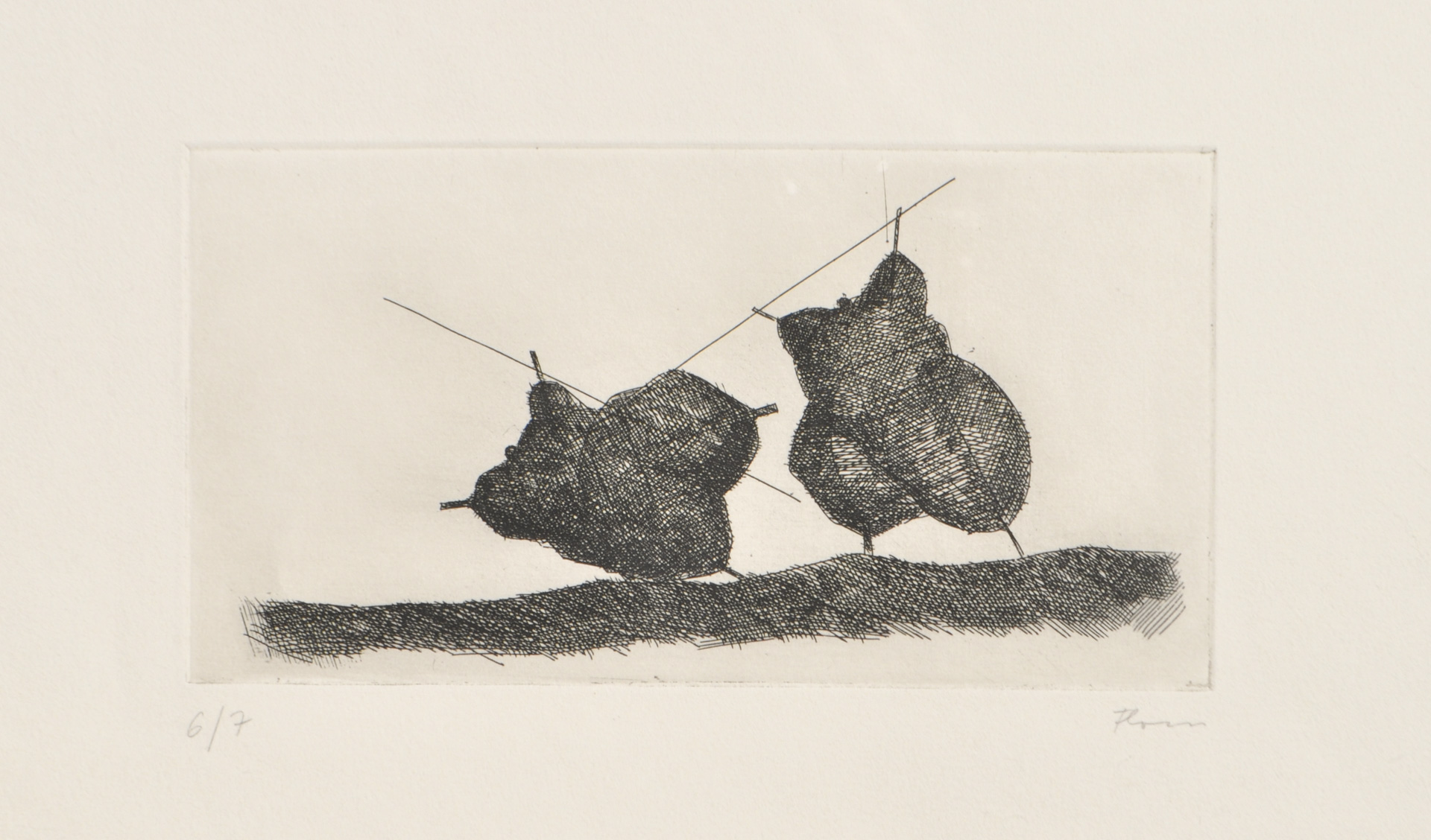 Paul Flora (Glurns/Glorenza 1922 – Innsbruck 2009) La lotta;Acquaforte, 11,5 x 22,2 cm (lastra), in cornice