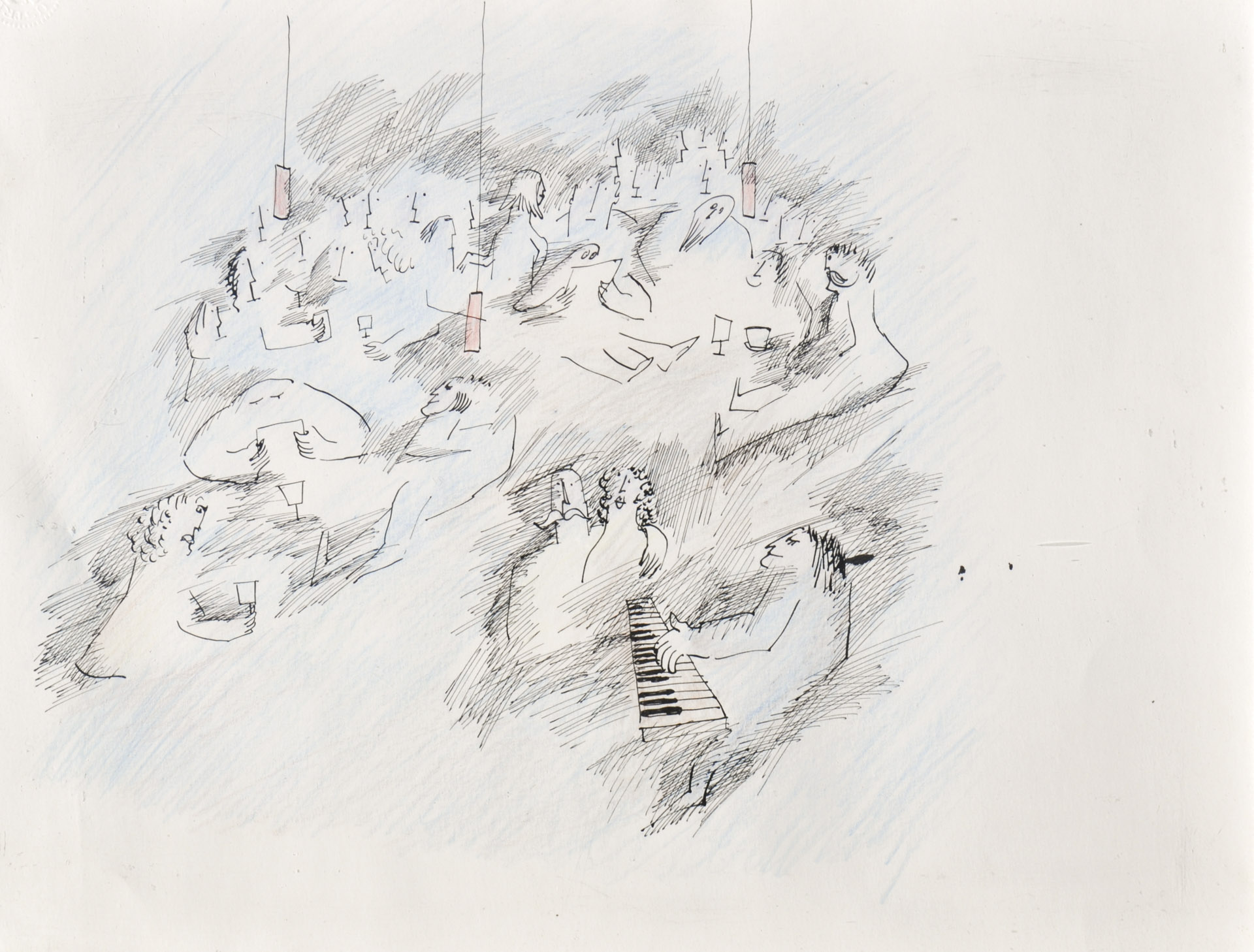 Bert Breit (Innsbruck 1927 – 2004) Al caffè;China, matite colorate, 27,5 x...