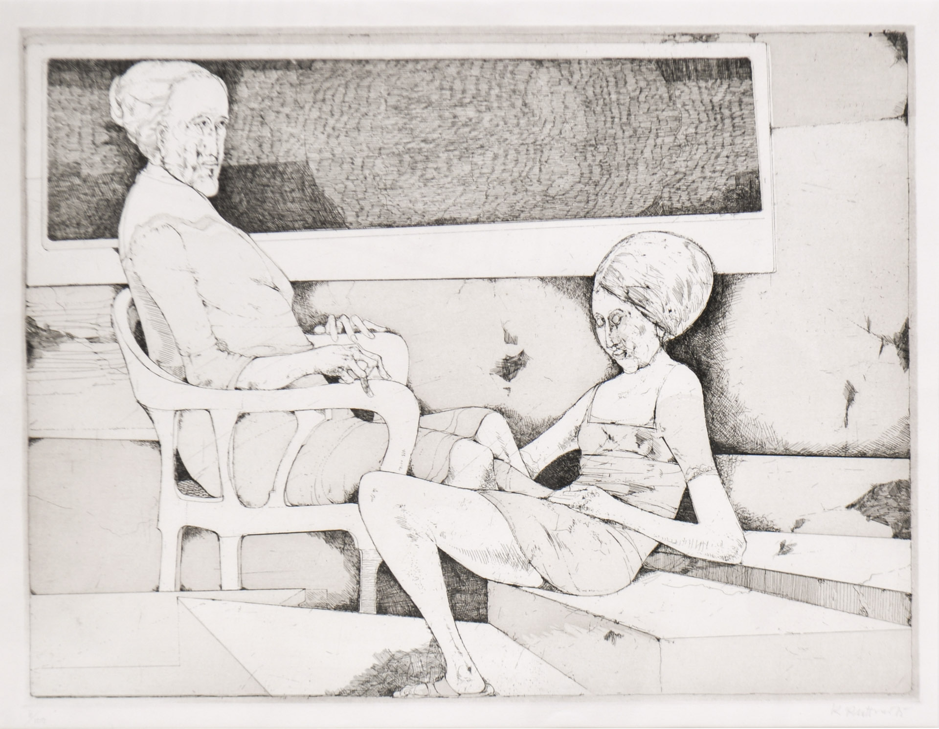 Karl Plattner (Mals/Malles 1919 – Mailand/Milano 1986) Fra donne, 1975;Acquaforte, 37,2 x 50 cm (lastra), in cornice