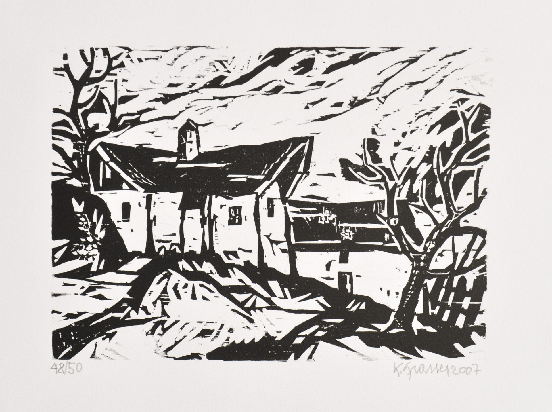 Karl Grasser (*Kortsch/Corces 1924) Maso in Val Venosta, 2007;Xilografia, 34,9 x 44,9 cm