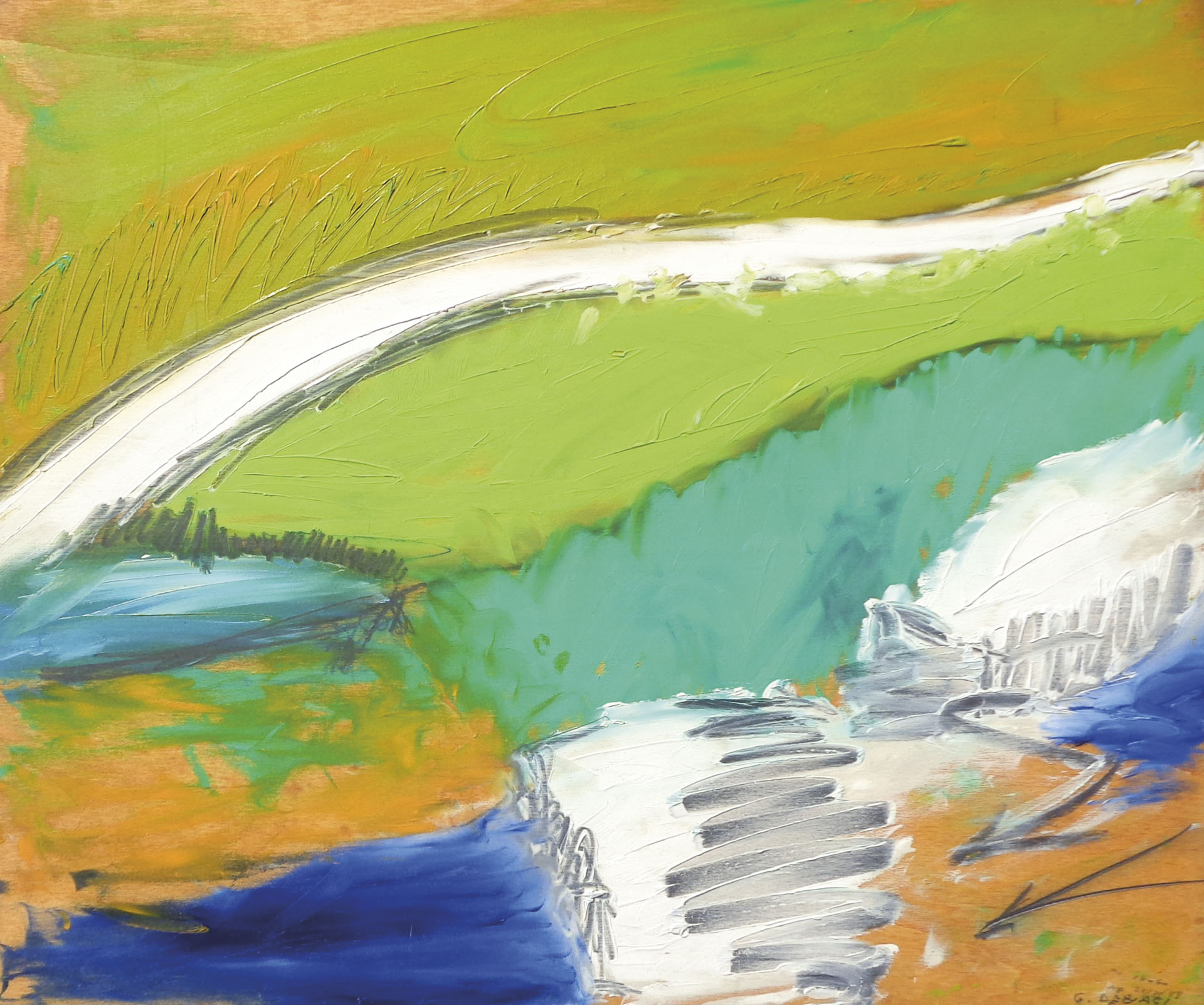 Giuseppe Debiasi (* Ala 1947) Paesaggio, 1988;Olio su tavola, 50 x 60 cm