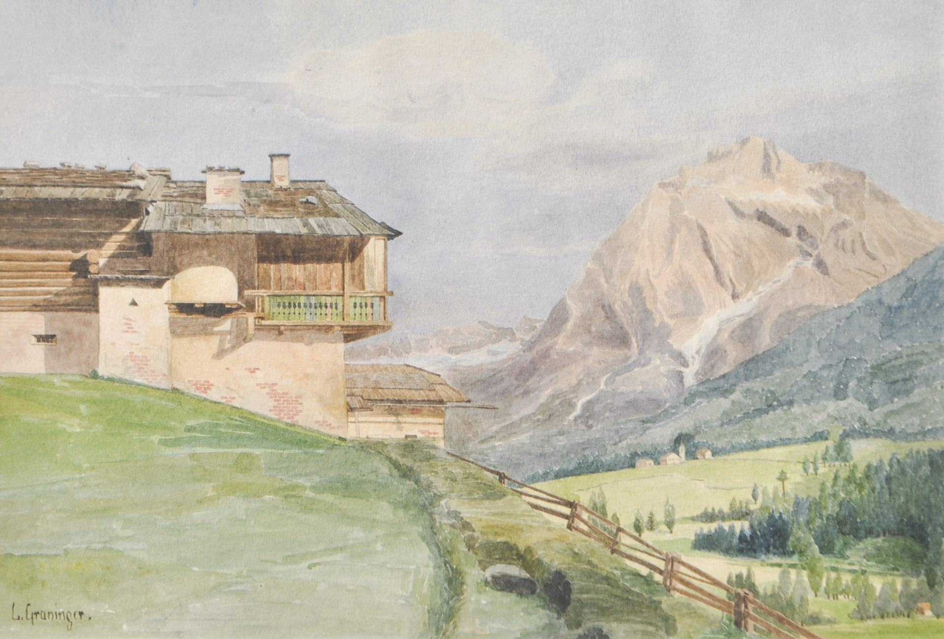 Leopold Graninger (Wien/Vienna 1852 – 1941) Paesaggio alpino con maso;Acquerello, 19 x 28 cm, in cornice