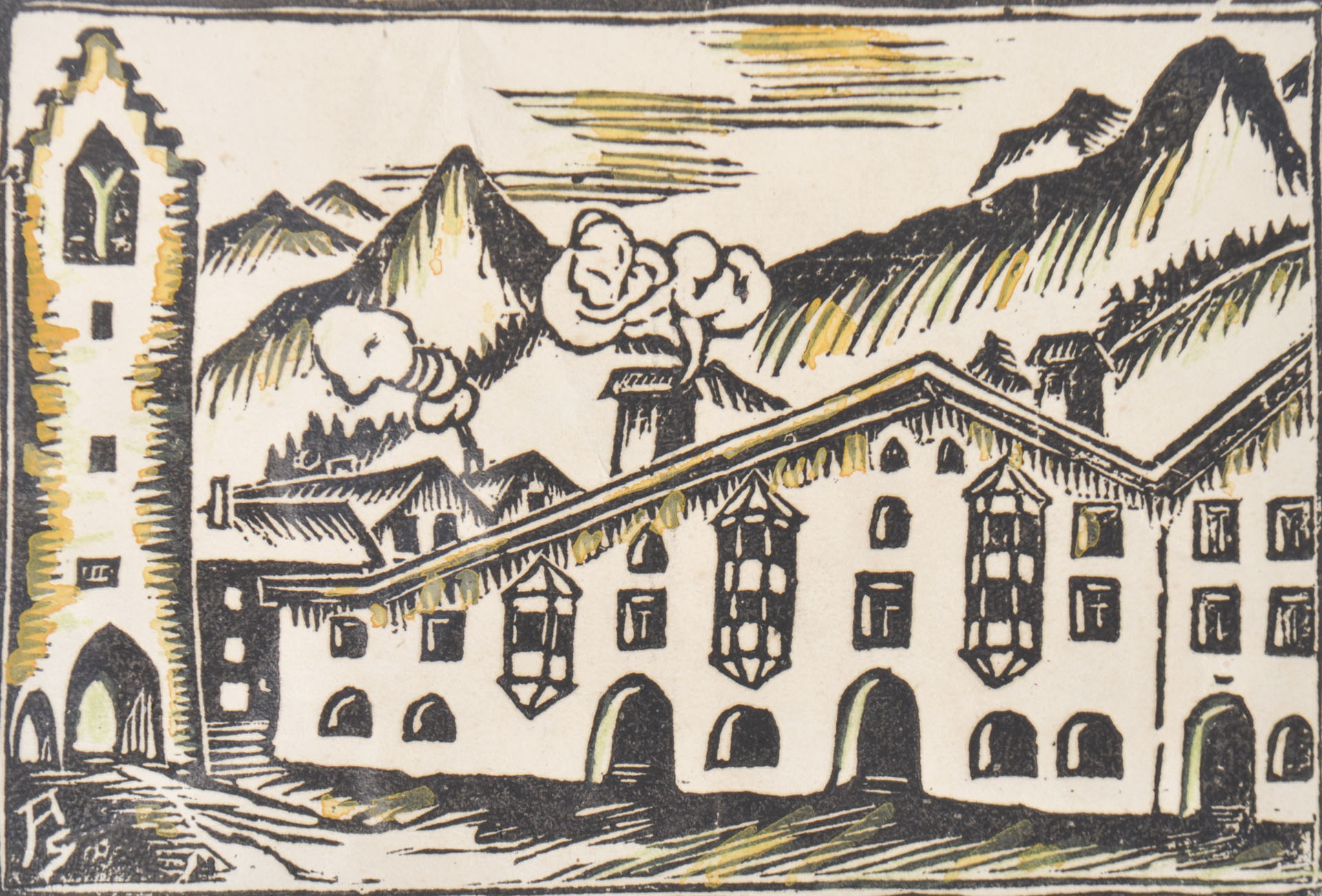 2 xilografie, di cui una colorata, 9,5 x 13,7 cm e 18