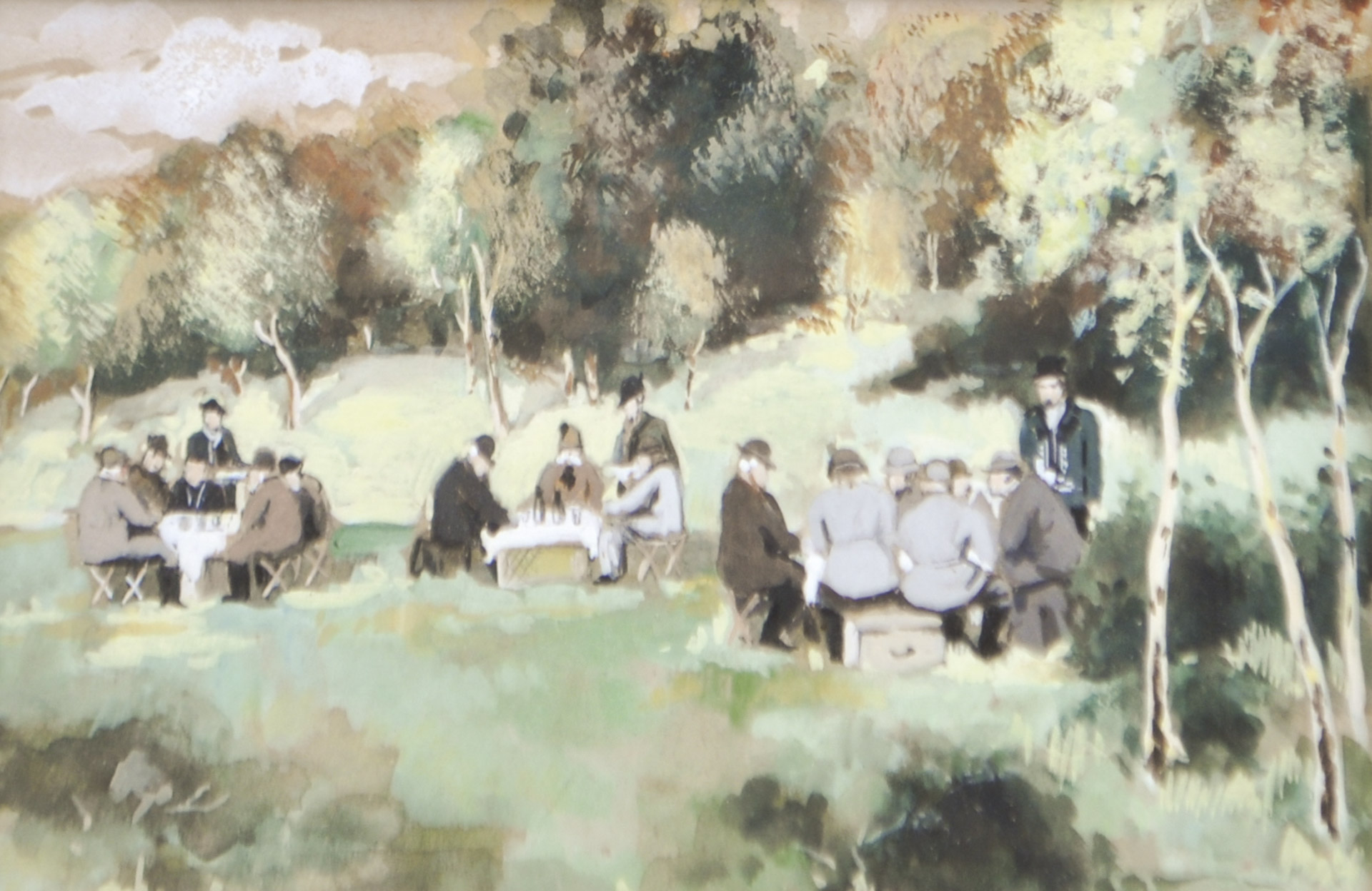 Franz Thiele Kopie /copia L’imperatore Francesco Giuseppe durante una prima colazione prima della caccia;Tempera, 9,6 x 15 cm