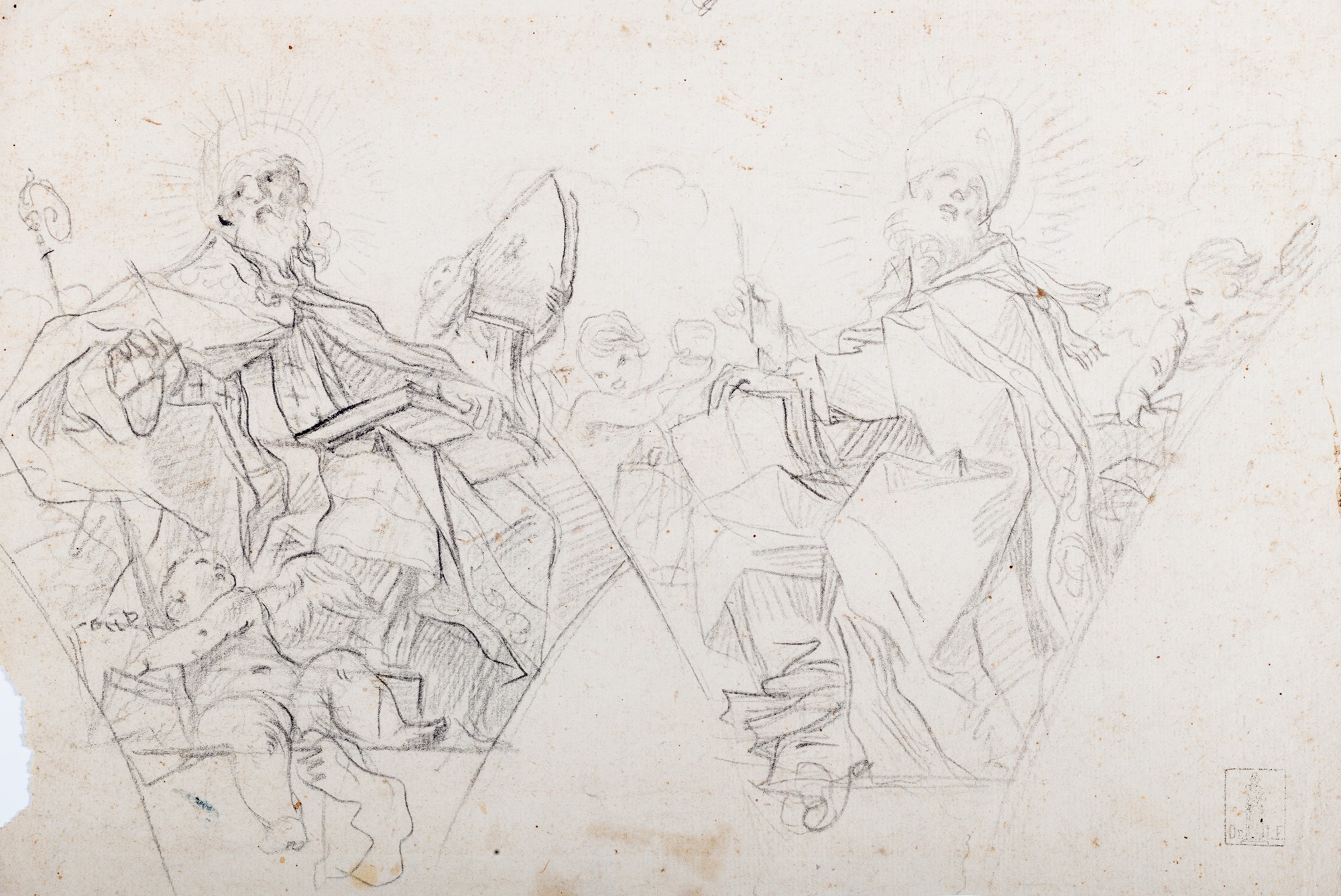 Lot 12 | Scuola napoletana, secolo XVII - Studio di due vescovi con angioletti, entro pennacchi