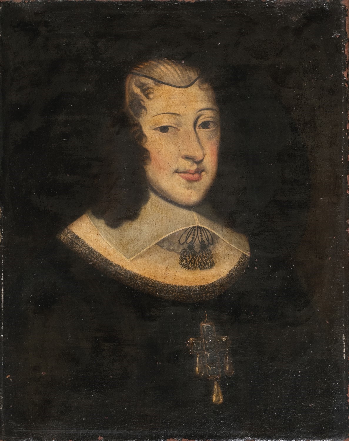 Seguace di Justus Sustermans - Ritratto di gentildonna a mezzo busto, in abiti neri e colletto bianco