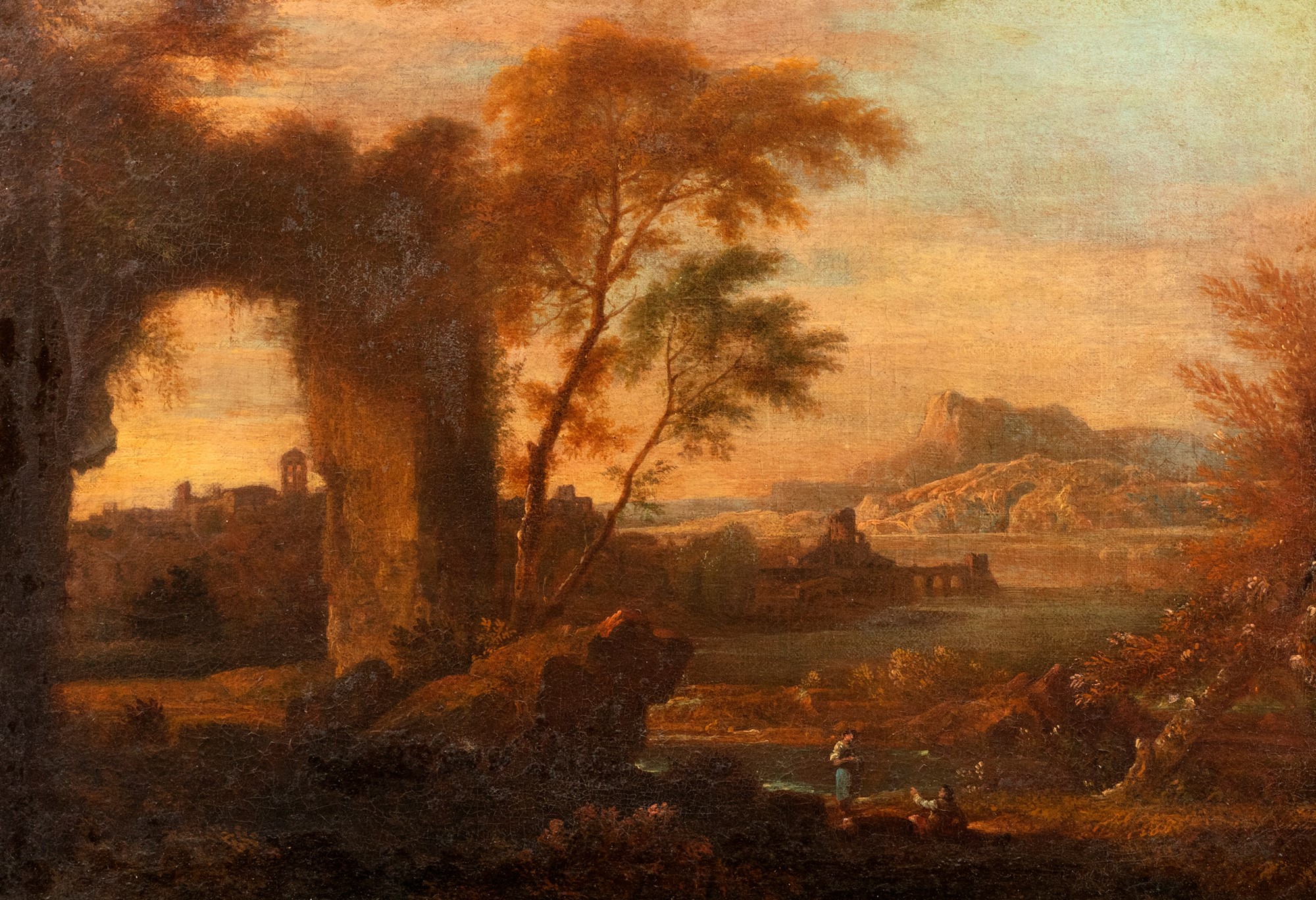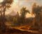 Scuola veneta, secolo XVIII - Due paesaggi fluviali con astanti