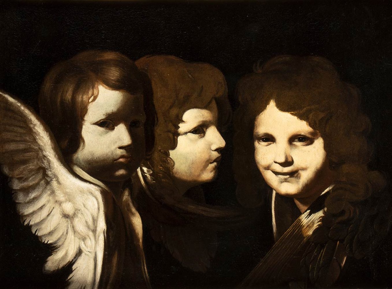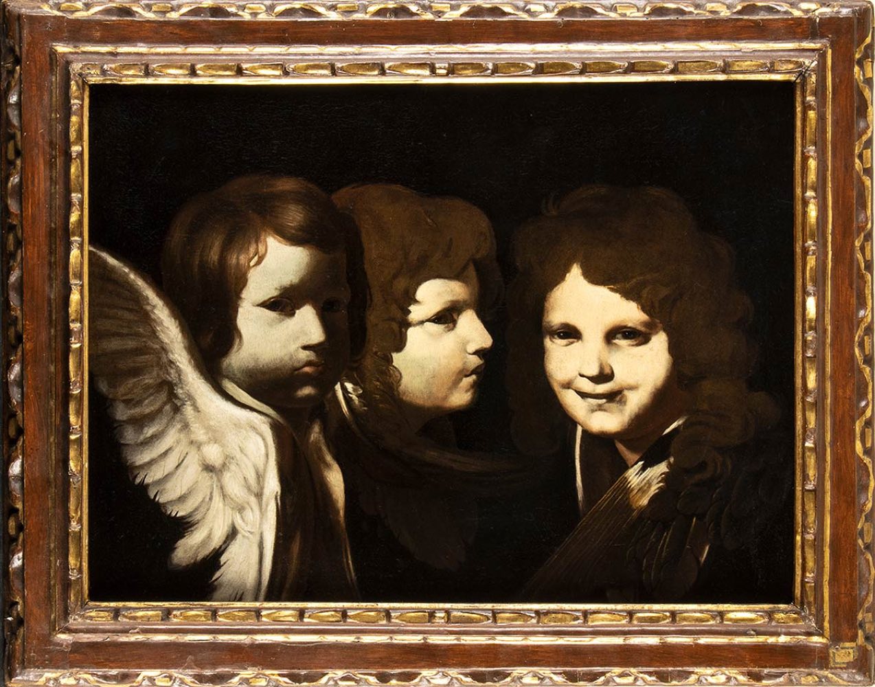 Gruppi angelici o anche singoli angeli sono stati più volte eseguiti da Spadarino e dai suoi aiuti, sia come porzioni di dipinti più ampi con iconografie piu complesse, sia come composizioni autosufficenti. Possiamo riconoscere il prototipo nella tela oggi conservata nel palazzo di Propaganda Fidae, a Roma, ma sono note numerose repliche, assai variabili per qualità, impaginazione e numero di figure. La presente versione spicca per finezza esecutiva, materia pittorica ed efficacia nella resa delle espressioni, che ne rendono evidente la natura anche di possibile studio di volti di fanciulli.