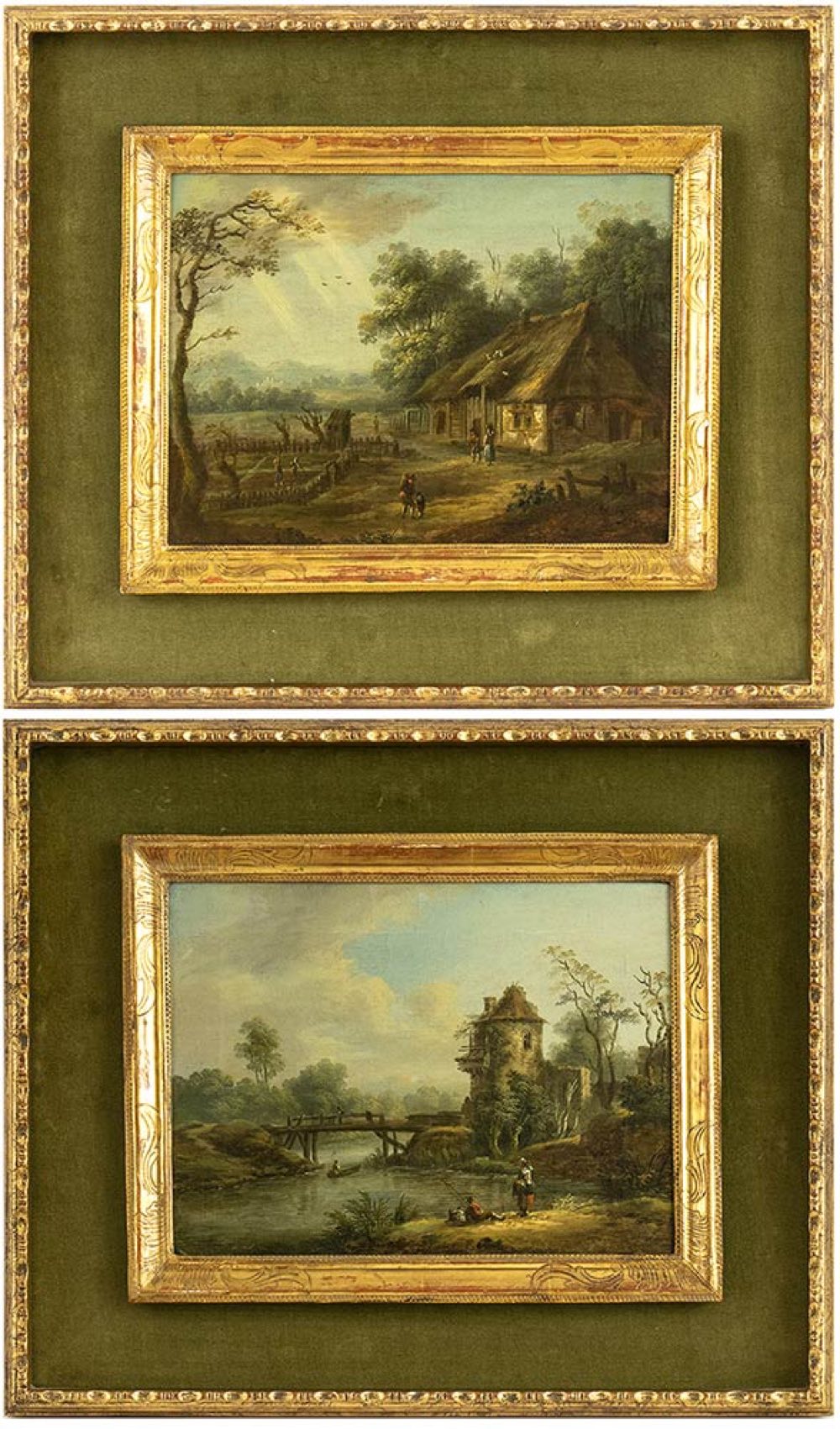 a-b) Coppia di dipinti olio su tela, cm. 23,5x31,5. Con cornice