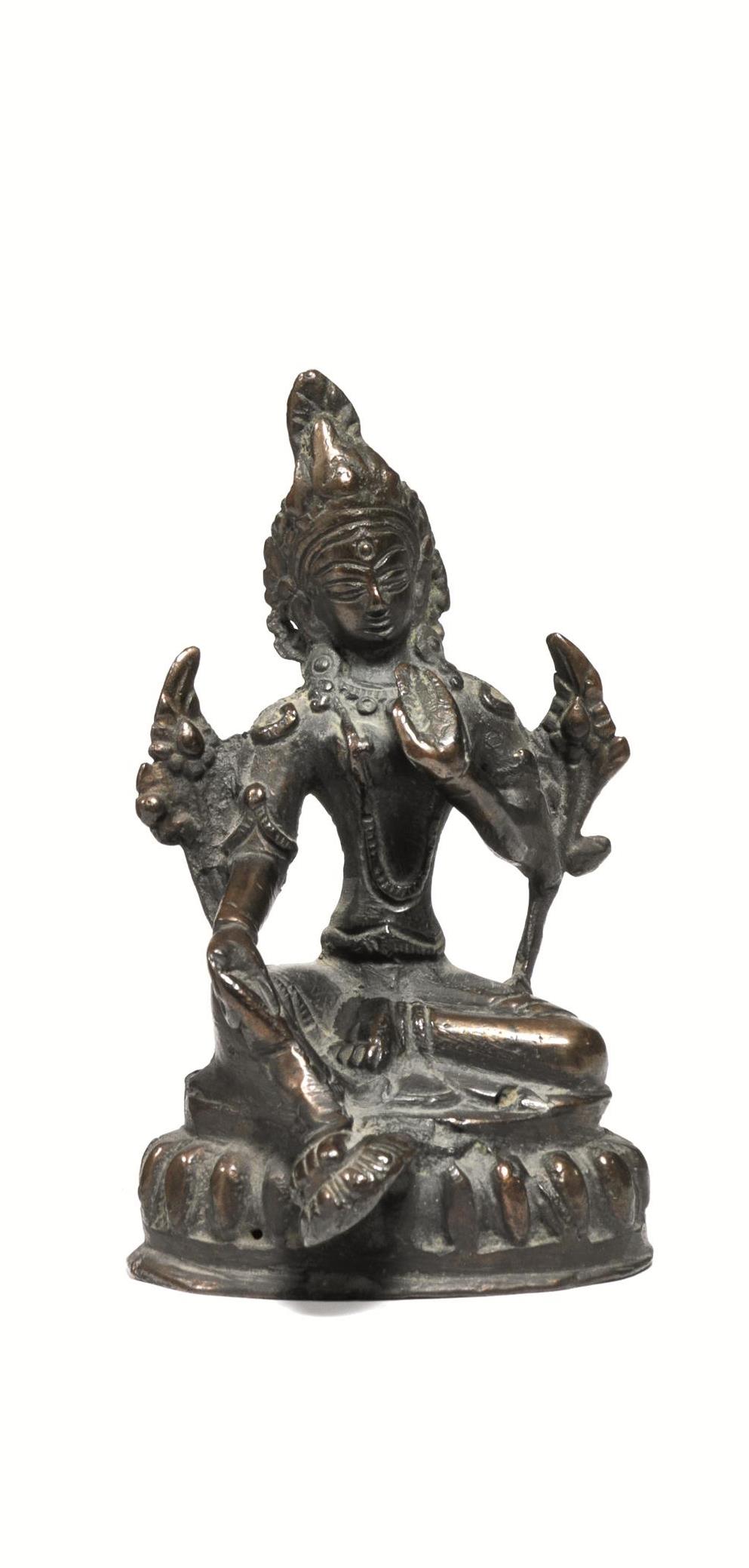 Scultura tibeto cinese, sec. XVI-XVII, in bronzo raffigurante Tara Verde...