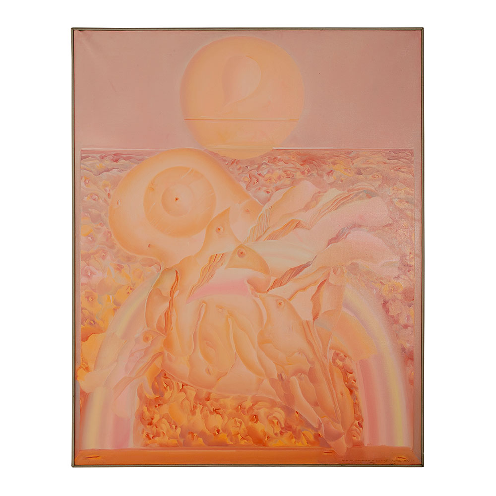 Firmato, datato e titolato in basso a destra: Piovve, poi l’arcobaleno ci illuminò Notari 1972 lu.
