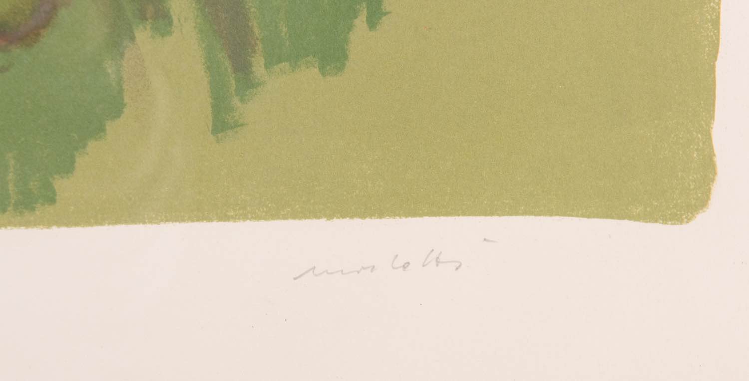 Litografia a colori su carta firmata in basso a destra Morlotti, tiratura in basso a sinistra 41/125, al retro reca etichetta di Giampaolo Buzzanca / Stampe antiche, Libri, Disegni - Padova, Lastra H cm 38x58