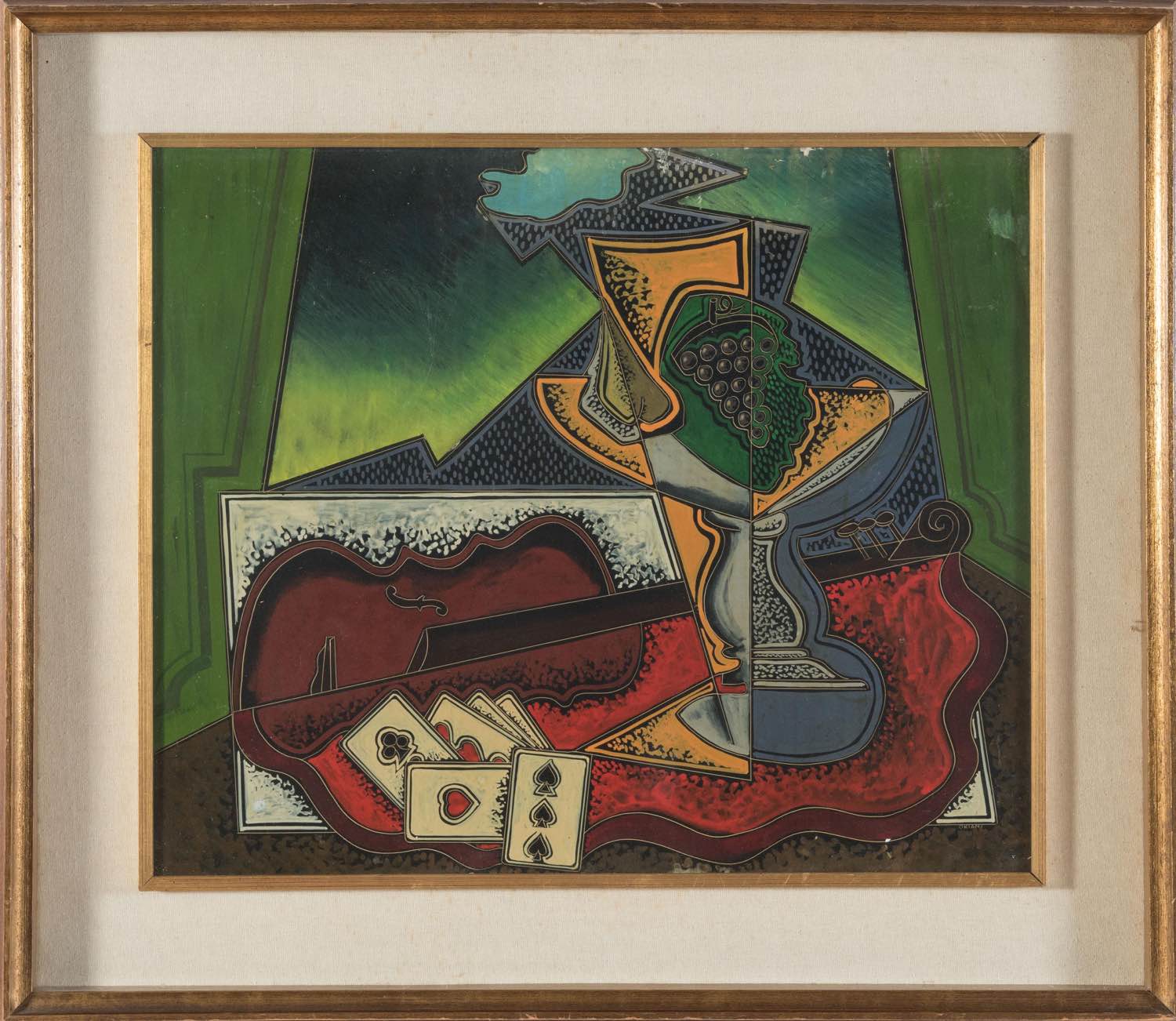 Pippo Oriani (Torino 1909 - Roma 1972), “Natura morta con carte da gioco”.