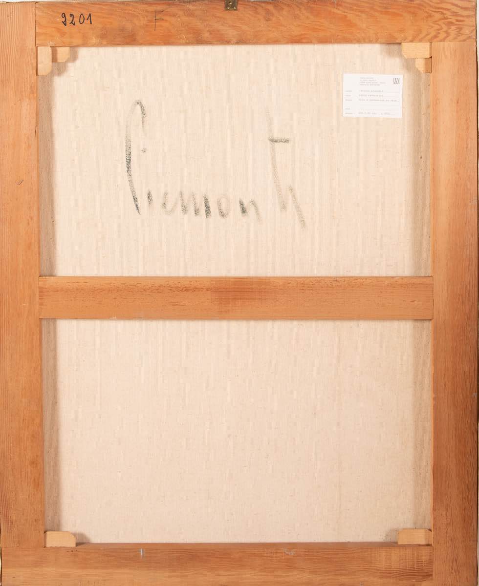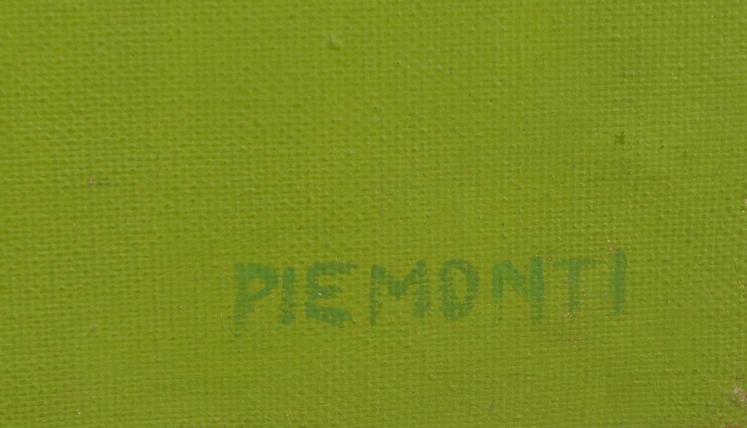 Olio e carboncino su tela, firmato in basso a destra e al retro Piemonti, numero di archiviazione 2201, H cm 100x81 Al retro reca etichetta dell’Artista. Opera accompagnata da certificato di autenticità con timbro e firma Lorenzo Piemonti e Moscardo Francesco Piemonti, agosto 1994.