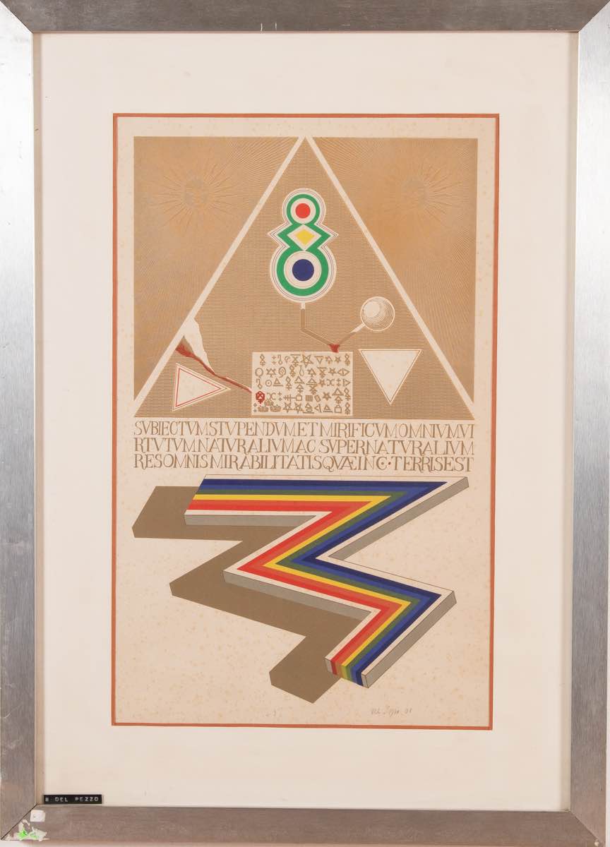 Litografia a colori su carta firmata e datata in basso a destra Del Pezzo 68, esemplare e.d.h., H cm 70x50